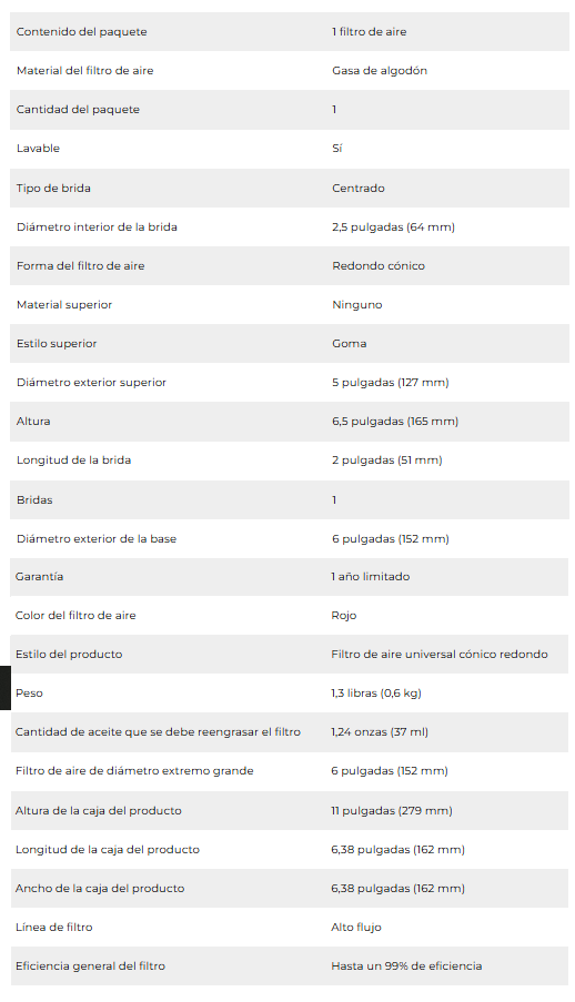 - POTENCIA DISEÑADA: El medio de filtrado de aire de última generación está diseñado para aumentar la potencia y la aceleración, así como para mejorar el rendimiento general del motor.