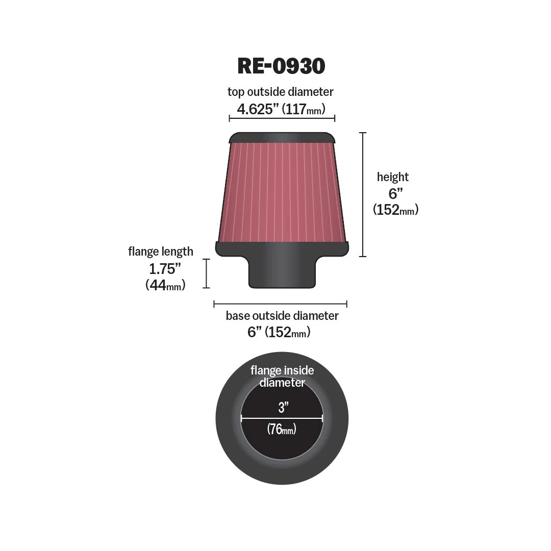 Filtro de aire- K&N Cónico Universal de alto flujo 3´ de entrada , con abrazadera