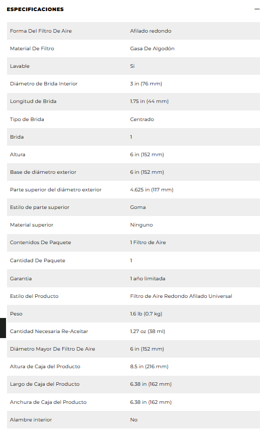 Los filtros de aire universales K&N están diseñados y fabricados para una amplia variedad de aplicaciones: vehículos de carreras, vehículos a radiocontrol, generadores, motos de nieve, tractores, entre otras aplicaciones. Independientemente del ángulo o del diámetro de compensación de la entrada de aire, es probable que exista un filtro de aire universal K&N para su equipo. Todos los filtros están construidos con bridas de caucho moldeada ultra fuertes y flexibles que absorben la vibración y permiten una fijación segura, y también se pueden estirar hasta 1/16 de pulgada (1.5 mm) para que se ajusten a los tamaños intermedios. Los filtros de aire universales K&N son lavables y reutilizables.
