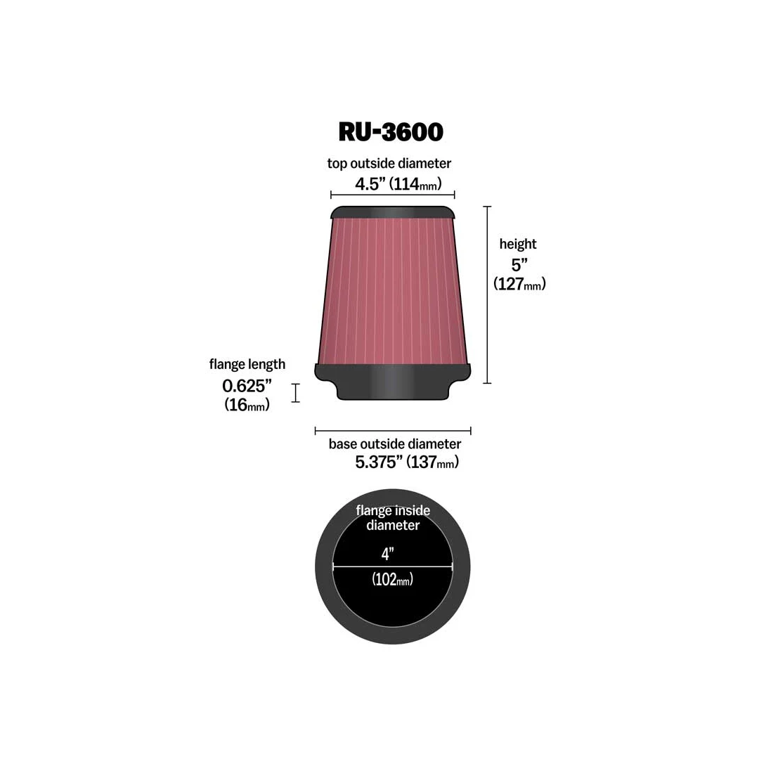 Filtro de aire - K&N Cónico Universal Entrada ID: 4" Flange X Altura: 5" / 5-3/8 in Base / 4-1/2in Top /