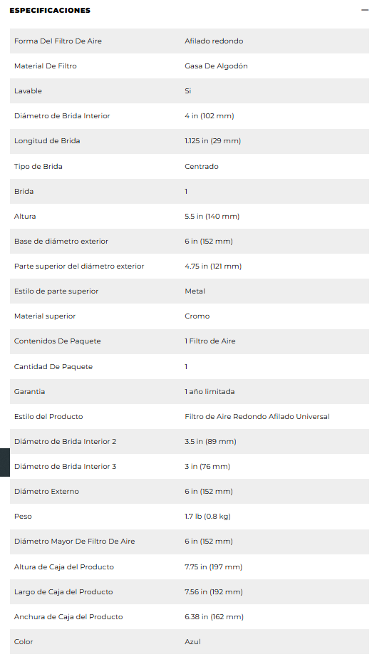 - Abrazadera de filtro de aire lavable y reutilizable