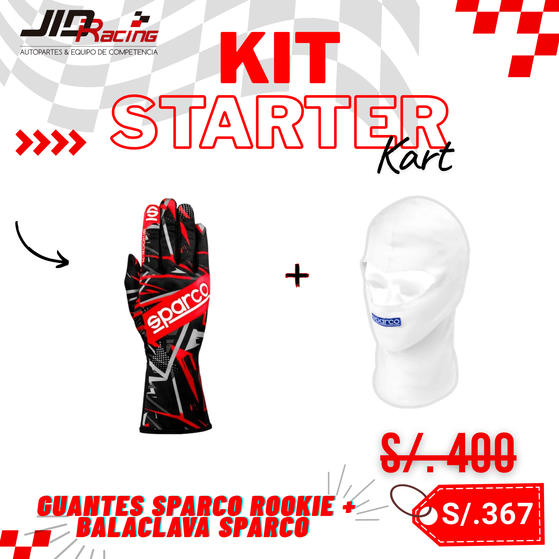 1 par de guantes SPARCO K Rookie + 1 Balaclava SPARCO Rookie